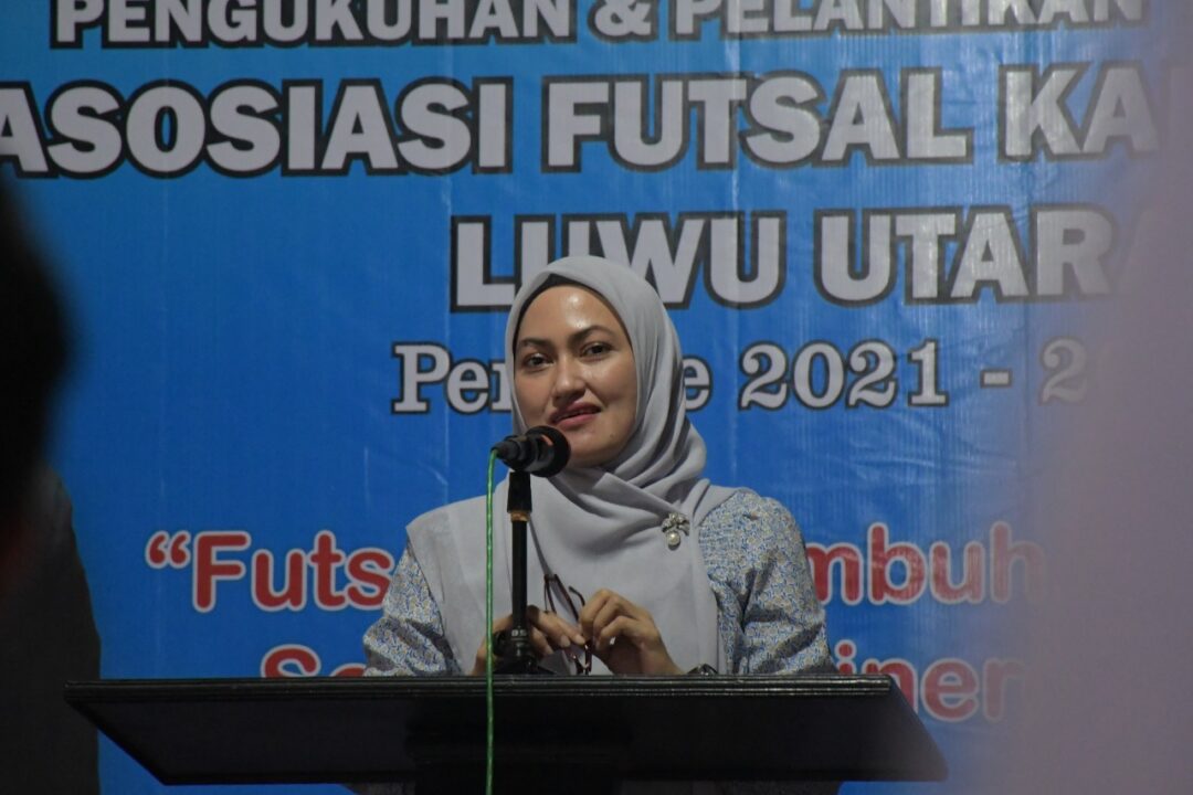 LUWU UTARA, Linisiar.id – Bupati Luwu Utara, Indah Putri Indriani, berkesempatan menghadiri Pengukuhan dan Pelantikan Pengurus Asosiasi Futsal Kabupaten (AFK) Luwu Utara Periode 2021 – 2025, Minggu (26/4/2021), di Teras Adira, Masamba.