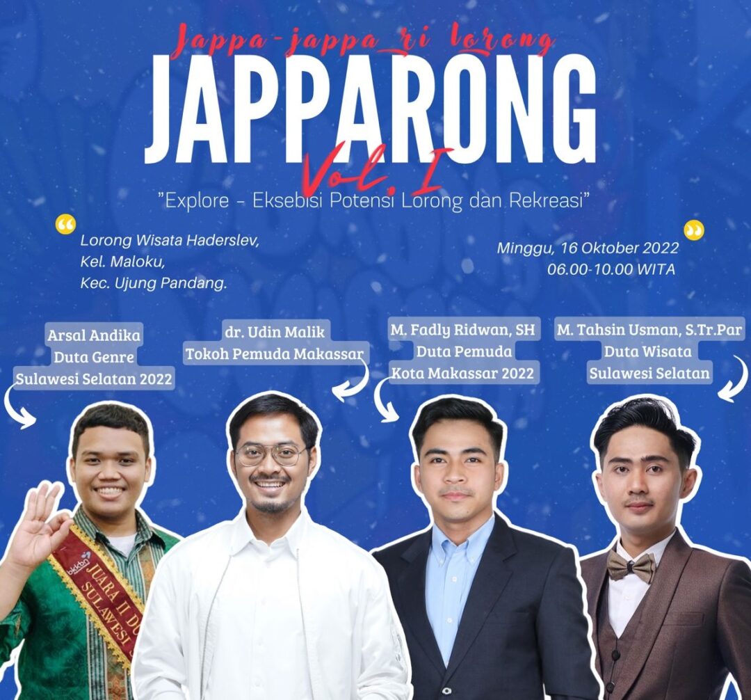 Melalui Japparong (Jappa-Jappa ri Lorong), Dispora mengajak masyarakat jelajahi potensi Lorong Wisata Haderslev, di Kelurahan Maloku, Kecamatan Ujung Pandang, Minggu (16/10/2022).