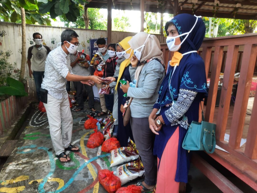 Selain menyerahkan paket sembako kepada seluruh jejaring yang ia namai jaringan Satukan Hati, Pipink, sapaan akrab Arum Spink, juga memberikan amanah sebagai distributor pembagian masker dan hand sanitizer secara gratis di wilayah domisilinya masing-masing.