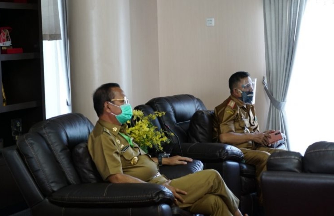 Bupati Luwu H. Basmin Mattayang (kiri) mengikuti rakor virtual dengan Mendagri Tito Karnavian, Senin (10/8/2020).