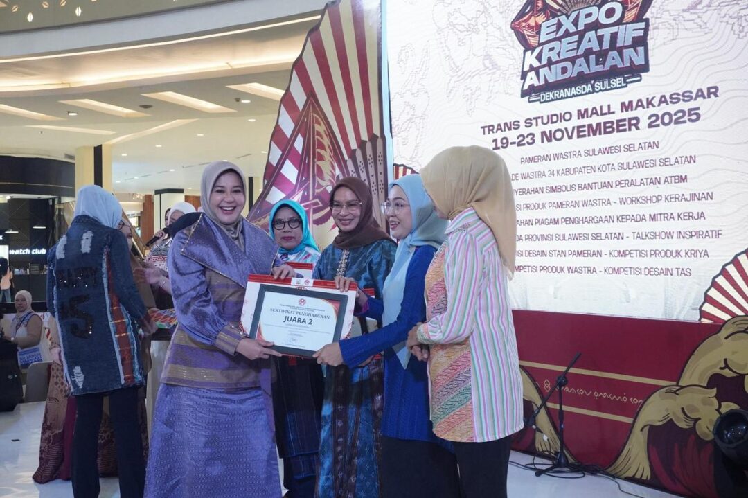MAKASSAR — Expo Kreatif Andalan 2025 resmi ditutup oleh Wakil Gubernur Sulawesi Selatan, Fatmawati Rusdi di Atrium Trans Studio Mall (TSM) Makassar, Minggu (23/11/2025).