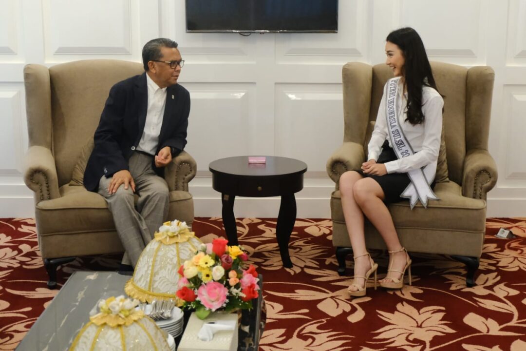 Gubernur Nurdin Abdullah menerima kunjungan perwakilan Sulsel pada ajang Putri Indonesia 2020, Karina Wijaya, di Kantor Gub Sulsel, Rabu (5/2/2020).