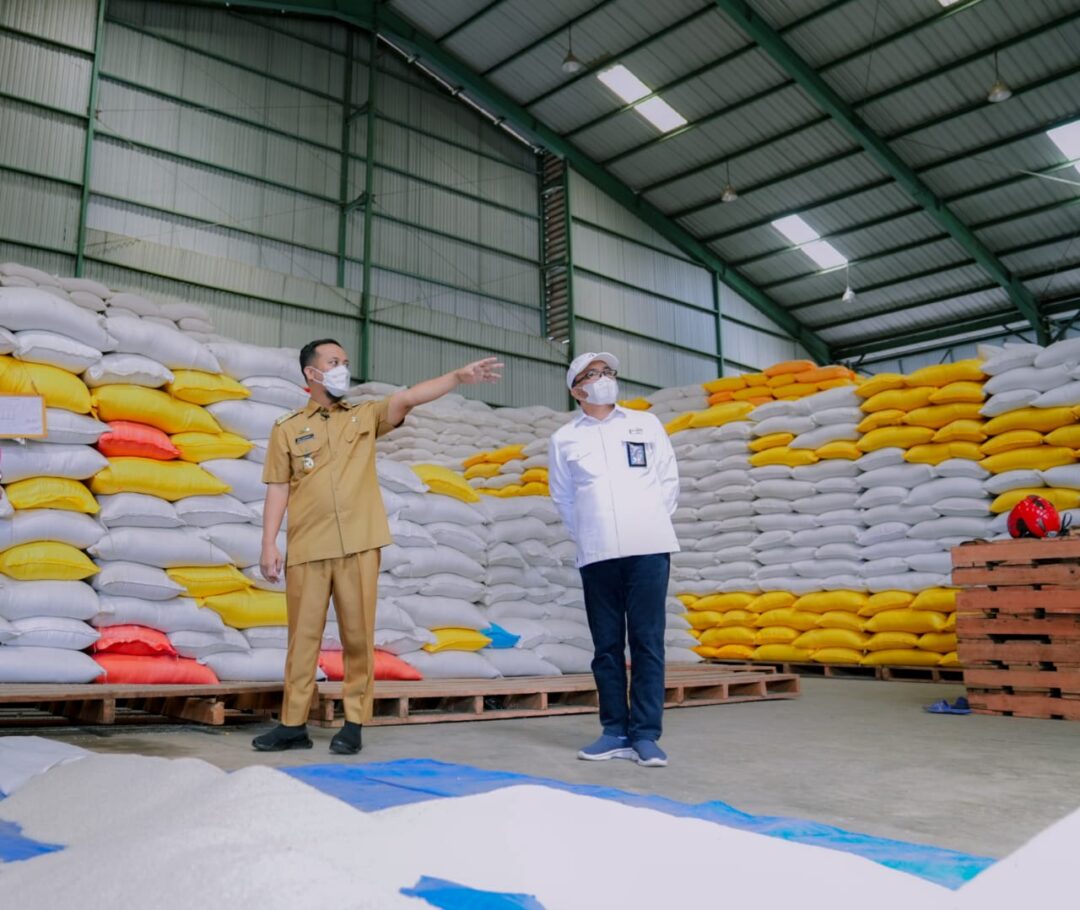 Dalam kesempatan itu, Gubernur turut memantau stok beras di gudang, serta analisa sebelum beras bongkar muat di gudang Bulog, dan melihat langsung proses rice to rice dalam memproses beras medium menjadi beras premium.