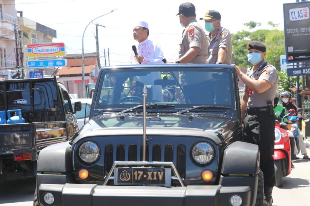 MAKASSAR, Linisiar.id – Kapolda Sulawesi Selatan Irjen Pol Mas Guntur Laupe menggandeng dai kondang Ustadz Das’ad Latief dengan mensosialisasikan bahaya pandemi virus Corona (COVID-19) menggunakan mobil bak terbuka keliling kota.