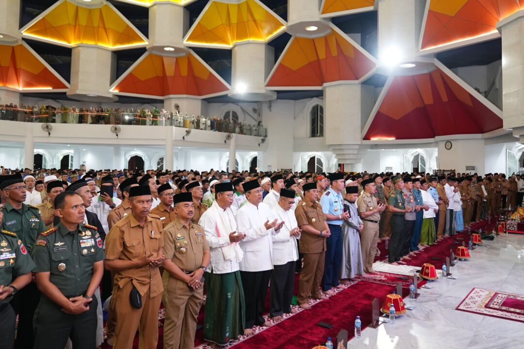 MAKASSAR, LINISIAR.ID – Sulsel Bersholawat dalam rangka memperingati Maulid Nabi Muhammad SAW sekaligus HUT ke 78 TNI, berlangsung khidmat, di Masjid Kubah 99 Asmaul Husna, Kawasan Center Point of Indonesia, Kota Makassar, Kamis (5/10/2023).