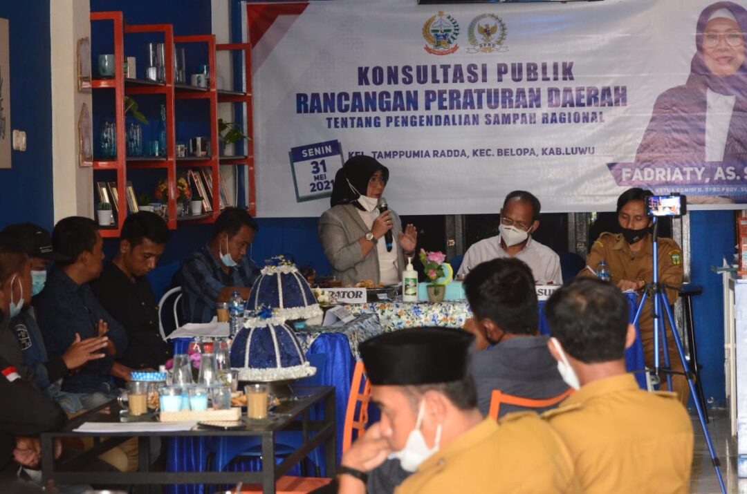 Luwu, Linisiar.id – Anggota Dewan Perwakilan Rakyat Daerah (DPRD) Sulawesi Selatan (Sulsel) Fadriaty Asmaun, gelar konsultasi publik Rancangan Peraturan Daerah (RANPERDA) tentang Pengendalian Sampah Regional.