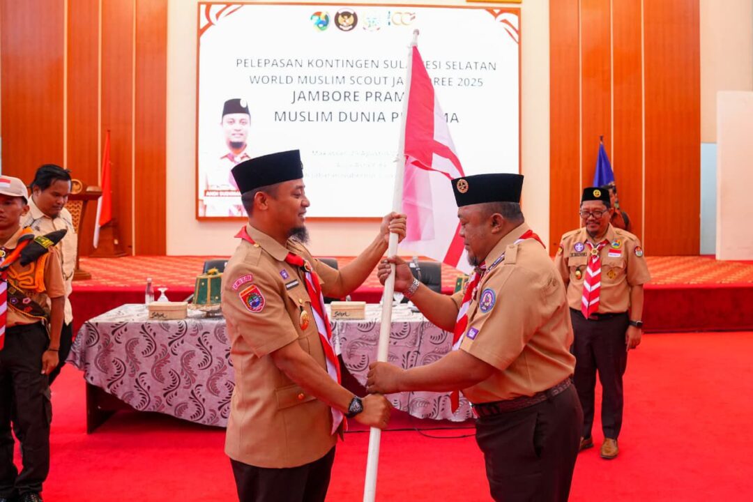 MAKASSAR – Gubernur Sulawesi Selatan (Sulsel) Andi Sudirman Sulaiman resmi melepas 460 anggota Kontingen Pramuka Sulsel yang akan mengikuti World Muslim Scout Jamboree 2025.