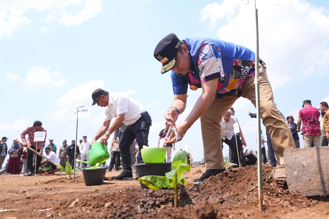 SINJAI – Pj Gubernur Sulsel, Bahtiar Baharuddin, melakukan penanaman pisang bersama Pj Bupati Sinjai, Bupati Bulukumba, dan seluruh Forkopimda, di Kelurahan Mannanti, Kecamatan Tellu Limpoe, Kabupaten Sinjai, Jumat, 27 Oktober 2023.