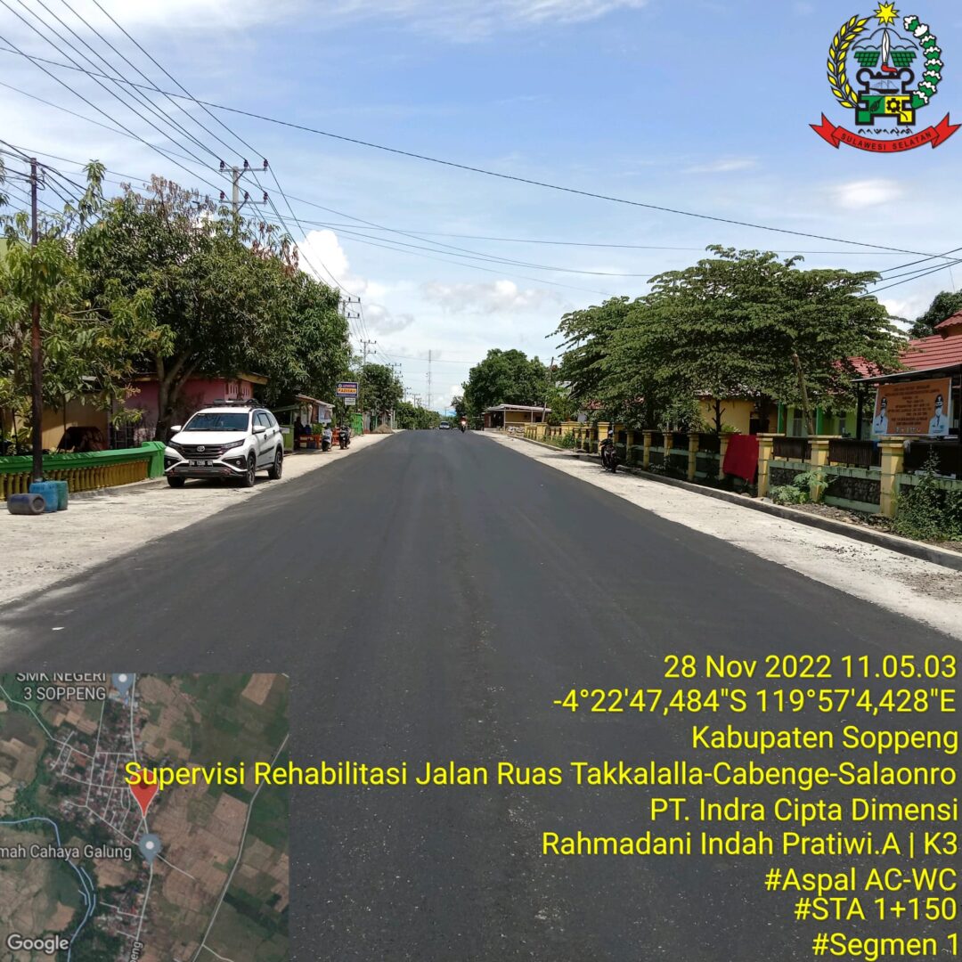 Salah satu diantaranya Ruas Takkalalla – Cabbenge – Salaonro di Kabupaten Soppeng yang pengerjaannya saat ini hampir mencapai 100 persen.