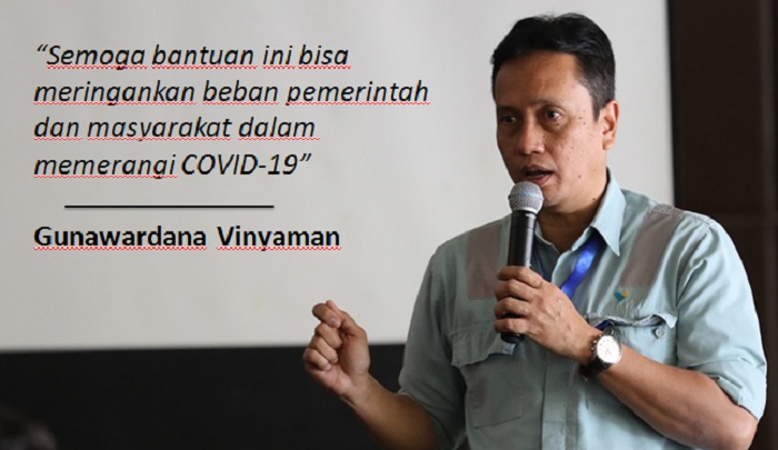 Sebanyak 30 thermo gun, 2.460 liter cairan desinfektan, 38 paket logistik untuk posko Covid Pemda, 23 tempat tidur medis, 2 ventilator, dan 1 unit ambulans.
