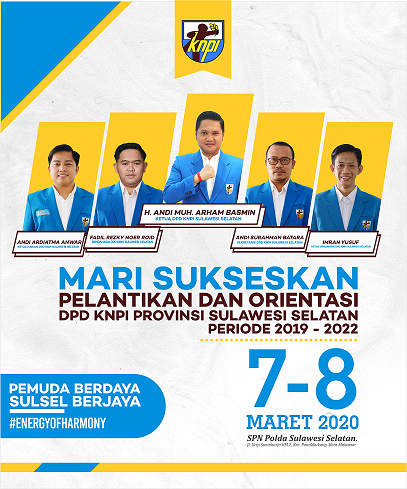 Arham Basmin dilantik menjadi Ketua KNPI Sulsel bersama 400 pengurusnya. Mengawali tugas menjalankan roda organisasi, Ketua Umum DPP KNPI, Haris Permata menyerahkan langsung bendera pataka kepada Arham.