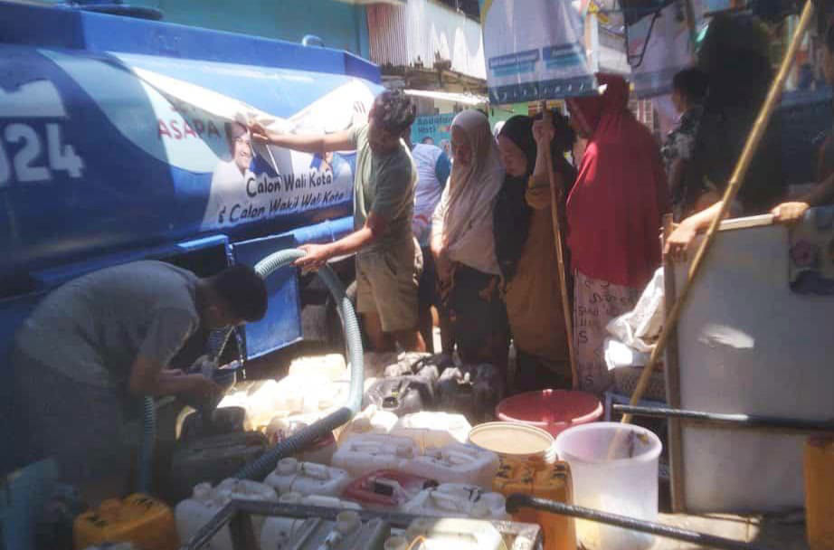Pasangan calon Wali Kota dan Wakil Wali Kota Makassar, Andi Seto Asapa dan Rezki Mulfiati Lutfi bergerak cepat membantu masyarakat Makassar yang terdampak krisis air bersih.