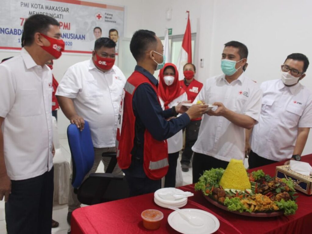 MAKASSAR, Linisiar.id – Ketua PMI Kota Makassar, Dr Syamsu Rizal, menyerahkan potongan tumpeng pertama untuk…