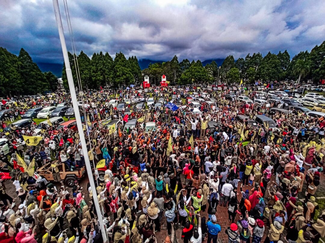 Sebelum menuju kantor KPU Lutim, pasangan Thorig Husler-Budiman ditemani Macoa Bawalipu terlebih dahulu menyapa massa simpatisannya yang berkumpul di Lapangan Merdeka, Jl Sam Ratulangi, Desa Puncak Indah, Kecamatan Malili.